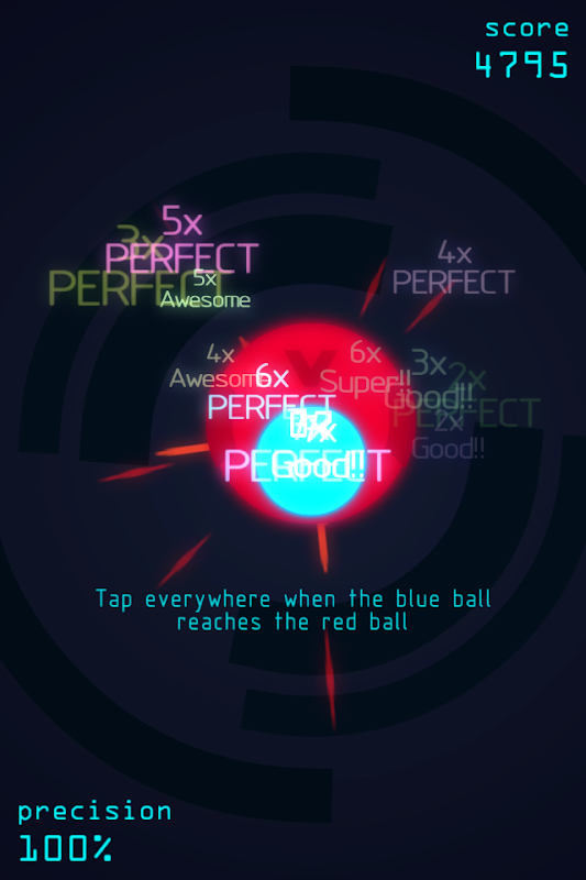 Tap the screen when the blue ball reaches the red ball, tap very fast for combos!... sounds easy right?