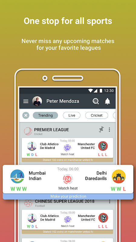 *** The World's No. 1 Social prediction app with biggest sports community for games like Cricket 🏏 (Covers IPL, ICC, BBL, Asia Cup, etc), Football ⚽️ (FIFA, Premier League, Bundesliga, Champion Leauge, EPL, etc), Kabaddi 🤼♂️ (ProKabaddi & International Leagues) and Hockey🏑 World cup, Basketball 🏀 (NBA), CounterStrike 🎮, Baseball ⚾️ (MLB), American Football ⚽️ (NFL), and 10 more games 🥅! ***.