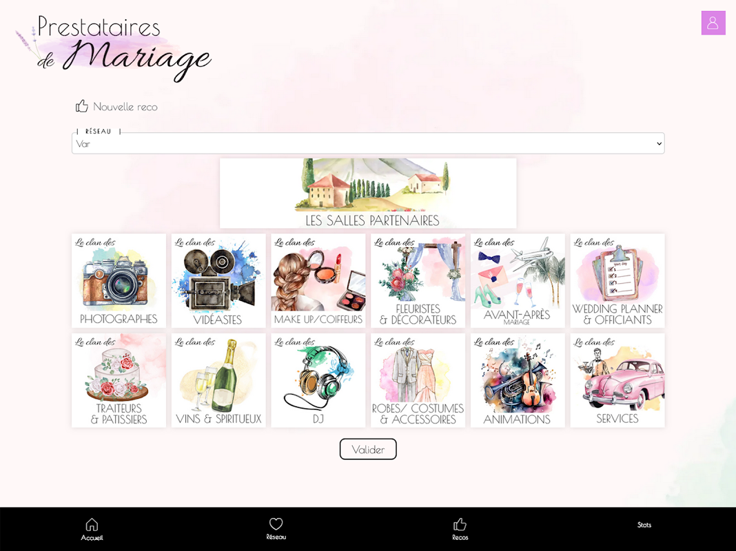 Uygulama içerisinde Düğün Hizmeti Sağlayıcıları ağınızın prosedürlerini yönetin. Özel uygulamanız aracılığıyla ağdan gelen öneriler ve istekler.
