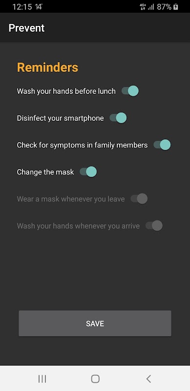 The Prevent App sends notifications that will help you to prevent COVID-19, such as: