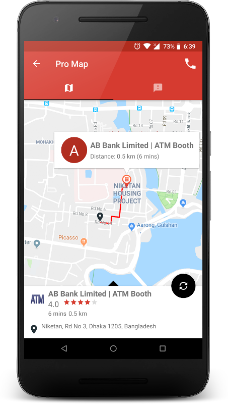 Pro Map is your digital assistant to find out nearest services you need. You can find the phone no. and location including the reaching time and possible multiple direction of nearest, ATM Booth, Airport, Art Gallery, Bank, Bar, Beauty Salon, Book Store, Bus Station, Café, Car Rental, Car Repair, Car Wash, Casino, Church, Clothing Store, Convenience Store, Court House, Dentist, Department Store, Doctor, Electrician, Electronics Store, Embassy, Fire Station, Furniture Store, Furniture Store, Furniture Store, Gym, Hardware Store, Hospital, Hindu Temple, Insurance Agency, Jewelry Store, Laundry, Lawyer, Library, Liquor Store, Local Government Office, Mosque, Movie Theater, Museum, Night Club, Painter, Park, Parking, Pharmacy, Post Office, Police Station, Real Estate Agency, Restaurant, School, Shopping Mall, Spa, Stadium, Store, Subway Station, Super Market, Taxi Stand, Train Station, Travel Agency, Zoo and so on.