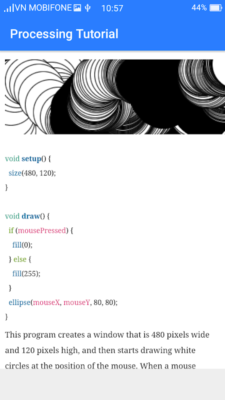 Processing is a flexible software sketchbook and a language for learning how to code within the context of the visual arts. Since 2001, Processing has promoted software literacy within the visual arts and visual literacy within technology. Processing tutorial App is a free course and easy to use.