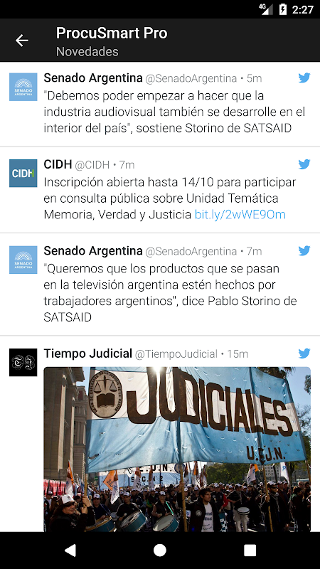 Sección de noticias vía Twitter en el inicio.