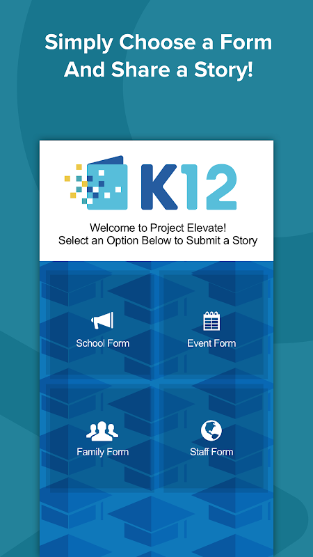 With the K12 Project Elevate app, sharing your story has never been easier! Simply download the app and choose the appropriate form to share a story with us.