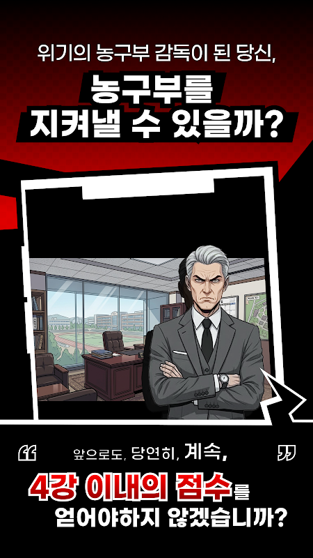 Koçun gözetiminde basketbol takımını yönetmeli ve lise basketbol turnuvasında ilk dörtte yer almalısınız. Öğrencileri kadroya katmalı ve onları harika oyuncular olarak yetiştirmek için eğitmelisiniz. Tesisleri geliştirmeli ve itibar puanlarını artırarak düğümleri etkinleştirmeli ve koçun istatistiklerini iyileştirmelisiniz.