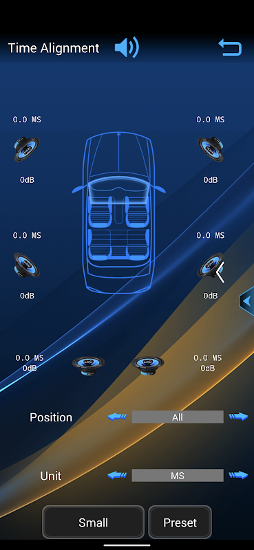 Yerleşik DSP işlemcili Prology araç radyosu modelleri için uygulama, ek ayar işlevlerini görüntüler: