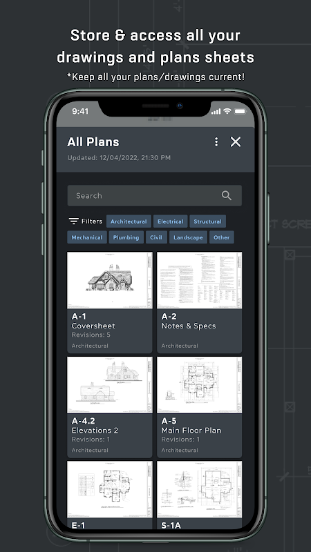 Projedeki herkese anında mesaj gönderin ve tüm mesajlarınızı ve iletişiminizi tek bir yerde tutun. Mimari planları ve çizimleri yükleyin, paylaşın, görüntüleyin ve işaretleyin ve ardından bu işaretlemeleri gerçek zamanlı olarak görün. Yorumlar, fotoğraflar ve videolar içeren notları doğrudan planlara yerleştirin, böylece herkes onları görebilir ve onlarla etkileşime geçebilir. İster sahada ister ofiste herkes aynı güncellenmiş planlar üzerinde çalışacak, çok daha az hata ve yeniden çalışma gerçekleşecek. Herkesin erişebilmesi için (izne dayalı) tüm belgelerinizi ProPlans'ta saklayın. Herkesi projelerinize davet edin, iletişim kopuklukları geçmişte kalsın!