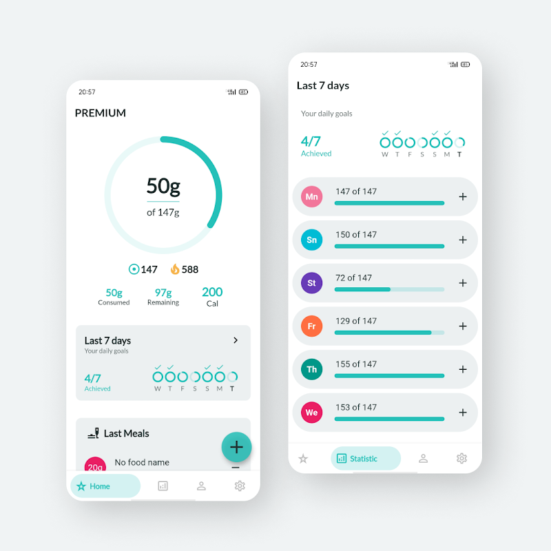 Protein Tracker uygulamasının ana ekranı ayrıca size son 7 günün ilerlemesini gösterir.