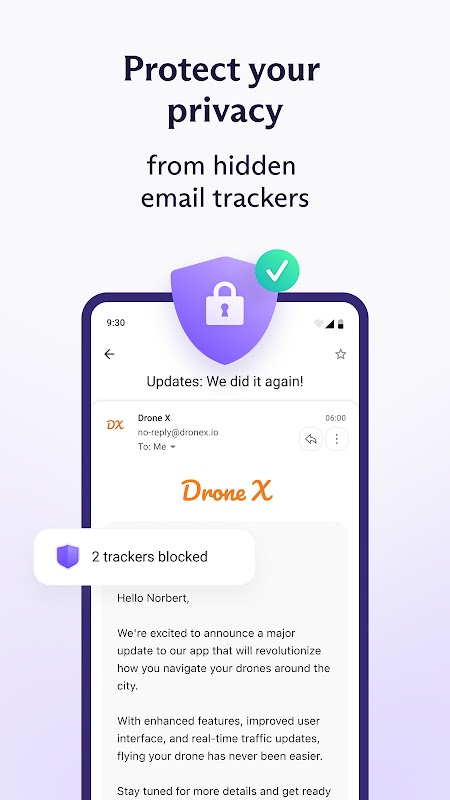 Proton Mail 1 milyondan fazla kullanıcısıyla dünyanın en büyük şifrelenmiş e-posta servisidir. Android için Proton Mail güvenli e-posta uygulaması PGP uçtan uca şifrelemesini sorunsuz bir şekilde entegre ederek mobil cihazınıza kullanımı kolay e-posta şifrelemesini getirir. Proton Mail ayrıca özelleştirilebilir kaydırma hareketleri ve e-postaların geçerlilik süresini belirleme olanağı gibi yenilikçi özellikler içeren modern bir kullanıcı arabirimi sağlar.