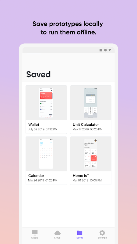 - Çevrimdışı kullanım için prototipleri yerel olarak kaydedin.