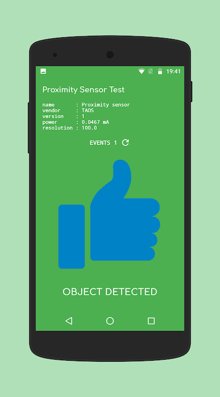 • Proximity Sensor Test Ekran Görüntüsü 1