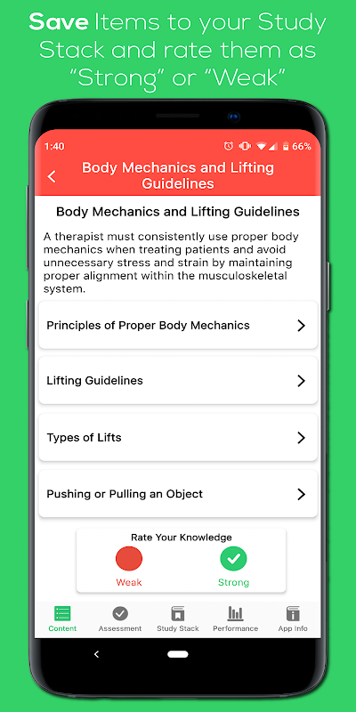 Fizik Tedavi İçerik Yüksek Lisans 750 çoktan seçmeli sorudan oluşan bir değerlendirme modu içerir. Çoktan seçmeli sorular içerik yorum modunda sunulan bilgilerin bir terapist ustalık değerlendirmek için tasarlanmıştır. Her kategori soru sayısı en az 25 ve 125 arasında bir maksimum arasında değişir. Terapistler belirli bir kategoriye (örneğin, kas-iskelet sistemi) veya rasgele modunda sınavlarına seçebilirsiniz.