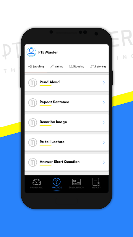 PTE Master uygulaması sınava hazırlamak için tasarlanmıştır.