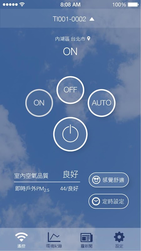 個人舒適帶:當偵測空氣品質超過個人設定值,主機自動啟動潔淨功能