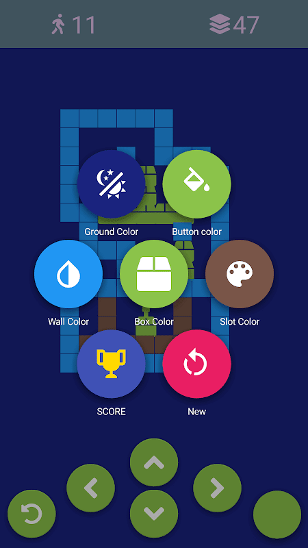 + Oyun teması, kutu rengini, kutu pozisyon rengini, duvar rengini değiştir, düğme rengini, oyun arka plan rengini çalıştır.