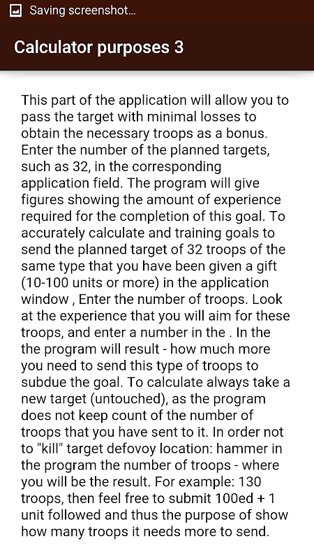 Uygulama savaş ve onlara ödülü almanın oyun Savaş Kuralları yerlerinin pasajında vazgeçilmez bir araç olacaktır. Ayrıca, zeka (saldırı savaş) kullanmadan hedefleri ve (ada, önbellek, mağaza, meslek, radyatör üzerinde) düşman olarak kalan asker miktarını hesaplayabilirsiniz.