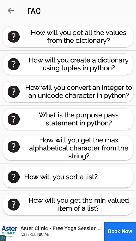 It is a full package for Python programming. Its contains tutorials to learn, mcqs(Update soon) to test your knowledge, coding questions to improve your logic , Interview question and get used to the Python style of coding and you can practice Python programming as you learn and test your knowledge.
