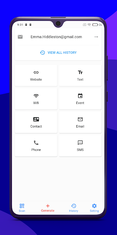 QR & Barcode Scanner App can read and scan all QR codes & barcode types including E-mail, product, text, url, ISBN, contact, location, Wi-Fi, calendar, etc.