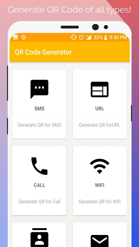 - Now Generate QR Code for a piece of Text, URL, SMS, Wifi, Call, Email etc