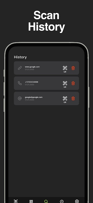 QR kodlarını taramak ve barkodları taramak için kullanışlı Android uygulaması.