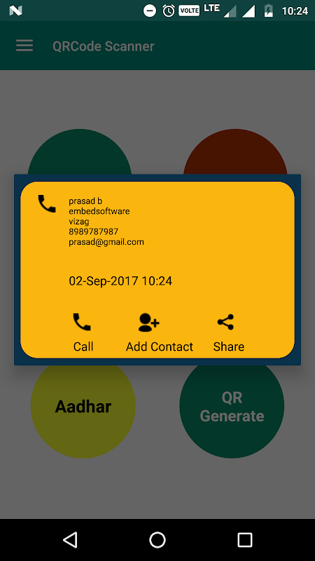 *if the qr code contains contact it will automatically add the contact page in your phone.