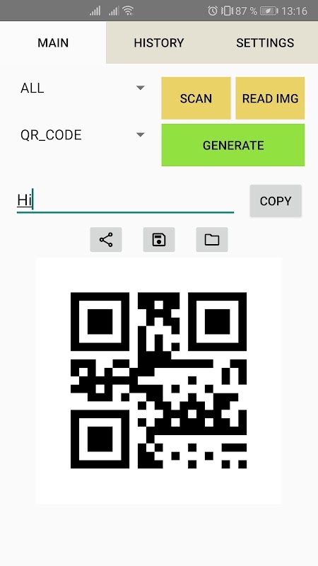 - taranan ve oluşturulan kodların içeriği geçmiş sekmesinde bulunur;