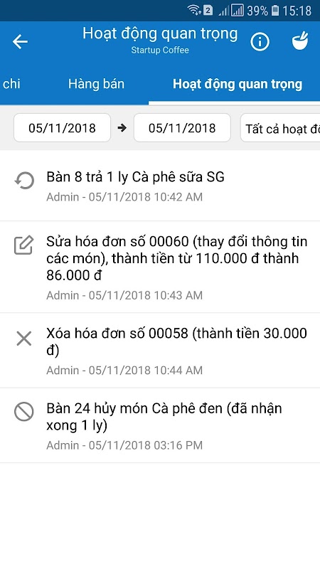 + Önemli faaliyetleri görün (sipariş iptali, faturaların düzeltilmesi, bitiş ...)
