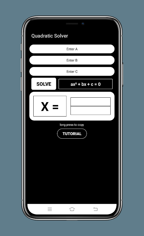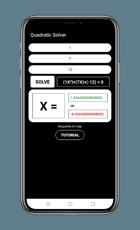 Kullanımı kolay bir ikinci dereceden formül çözücü.