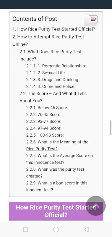 The Purity Test is one of the most taken quizzes and tests in the world. It is for the young students, people at college, and everyone who is willing to know how worldly they are. The test contains around one hundred questions regarding sex, drugs, crime, vice, and otherworldly things.