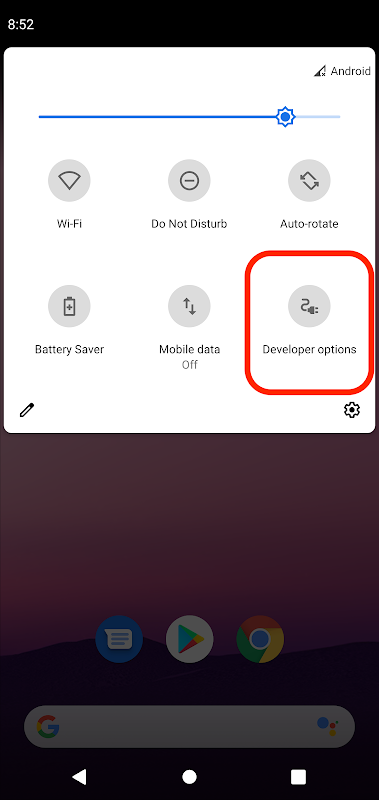 1. Çok sayıda düğmeyi tıklamadan Geliştirici seçenekleri sayfasına gitmek için Hızlı Ayarlar Kutucuğu'nu kullanma.