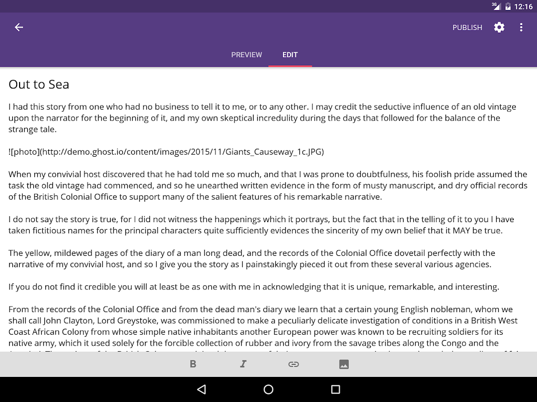 • Simple, intuitive interface based on Material Design principles and Ghost's web interface (along with some tasteful animations!)
