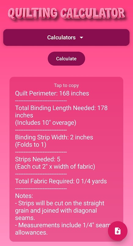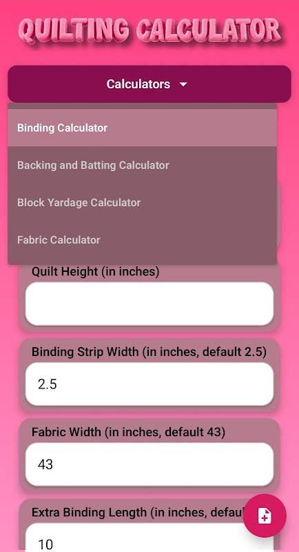 Kumaş ölçülerini tahmin etmekten bıktınız mı? Bu kapitone hesap makinesi yorgan matematiğini kolaylaştırıyor! İster kumaş kesiyor, ciltlemeyi hesaplıyor, ister yorgan desteğini buluyor olun, bu uygulama saniyeler içinde hassas ölçümler almanıza yardımcı olur!