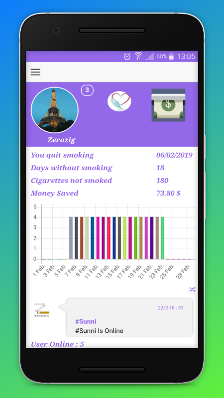 Sigarayı bırakmak isteyenlere sigarayı bırakmak eşlik ediyor. Bu uygulamayla, sigarayı bırakmış olanlardan kişiselleştirilmiş bilgiler alabilir ve günlük sigara içmenin faydalarını takip edebilirsiniz.