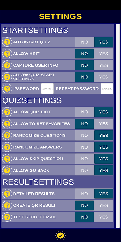 Trivia sınavları veya sınav hazırlıkları arasında seçim yapabilirsiniz. Sınavlar için yapılan pratik testler, sınav süresi, soru sayısı ve tabii ki geçme oranı gibi ek ayarları belirlemenizi sağlar