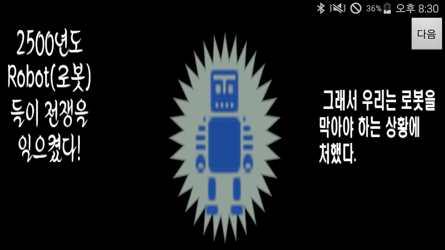 메인 캐릭터와 로봇이 가까이 닿으면, 퀴즈가 나옵니다. 퀴즈의 정답을 맞히면 로봇이 사라집니다.