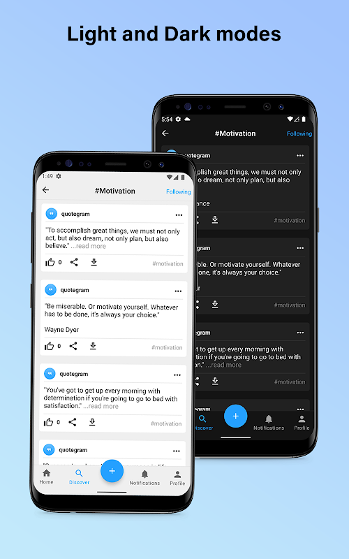 Quotegram, alıntılar oluşturmak, keşfetmek ve paylaşmak için bir sosyal alıntı uygulamasıdır.