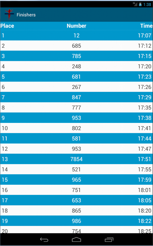 Race Timer is a free race timing system that allows race coordinators the flexibility of scoring road races within an android app. Features include: Name your race, capture runners as they pass the finish line, view finishers in the app, email results, save to multiple formats, and more! 5k, 10k, whatever the distance of your run, use Race Timer to capture runners' bibs as they cross the finish line and you will see their corresponding finish time for the event. Race Timer can also be used at the end of finish chutes to properly record the order of finishers replacing older, manual processes such as tear tags and popsicle sticks.