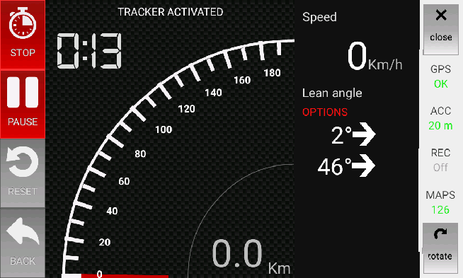 GPS tur zamanlayıcı, izleyici ve telemetri. Kayıt hızı, eğim açısı ve G-Force