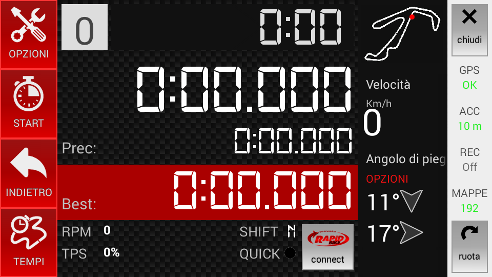 herhangi bir araç yarış kullanılabilir: go-kart, küçük motosiklet, çukur bisiklet, MiniGP, motosiklet veya araba yarışı ... Racetime tur zamanı, maksimum hız ve tur dereceleri kaydeder. Ardından, sektör tarafından kucağında ve sektör tarafından tüm koşular evrimini, ırk hızını, en hızlı tur, saat farkını ve tüm bu tur gözlemleyebiliriz. Bütün bunlar dünyanın herhangi bir yolda bulunmaktadır.