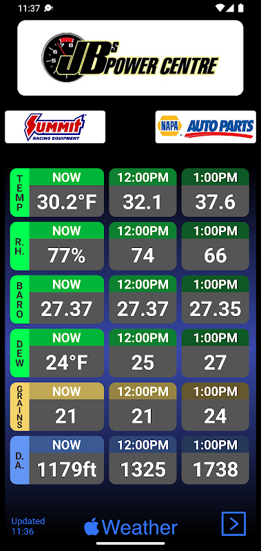 Sizin için önceden hesaplanmış yoğunluk irtifasıyla hava durumu istasyonunu kontrol edin.