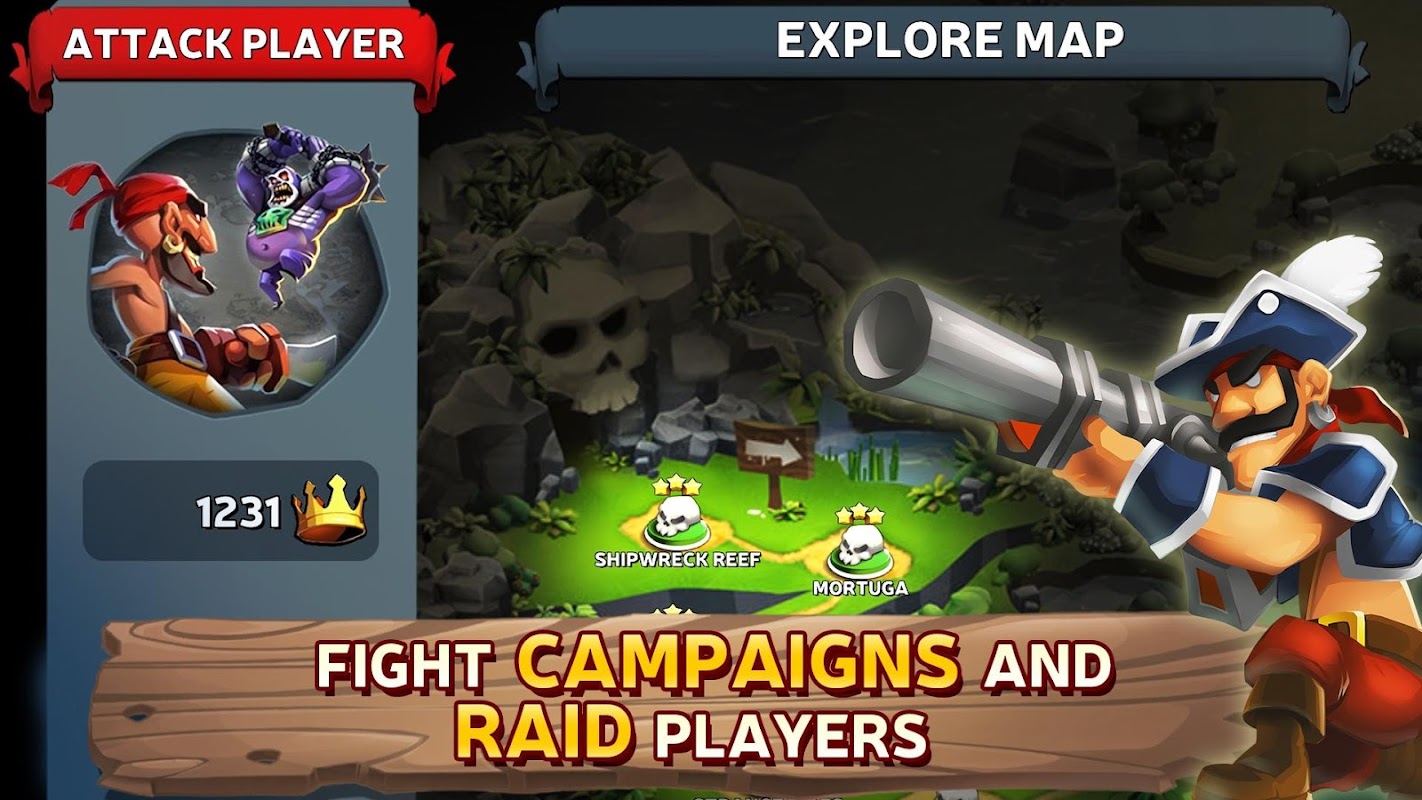 • Forge Alliances to create powerful pirate gangs. Earn more rum and gold!