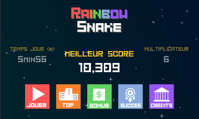 Klasik video oyunu dayanarak "Yılan" Yılan Gökkuşağı oyunculara klasik oyun gibi, daha hızlı yeni teknik ve görsel deneyim sunuyor. kaybolmadan meyve toplamak. Bir meyve kaybolursa, kaybedersiniz! patlayan ve daha yenilmezlik, otopilot gibi ikramiye kurtarır! başarıları kilidini ve sıralamasında en iyi puanı dövmek için çarpanı artar.