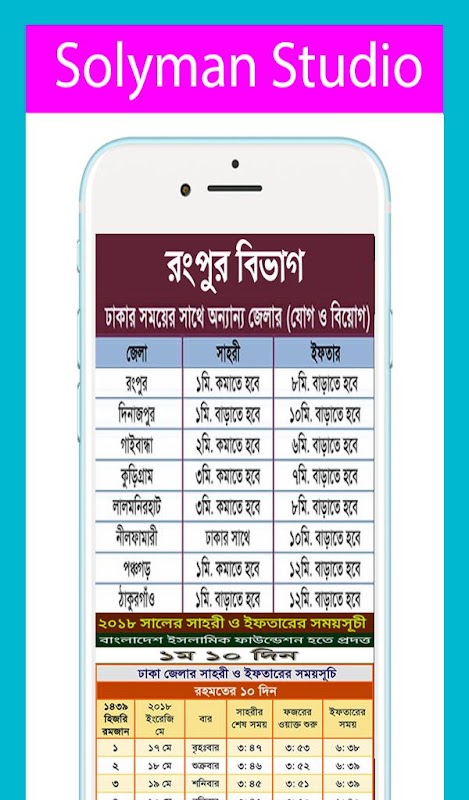 রমজান ক্যালেন্ডার ২০১৮ এটি মূলত মাহে রমজান ২০১৮ সময়সূচী। এই অ্যাপটির মাধ্যমে আপনি জানতে পারবেন ramadan calendar 2018 bangla রমজান ক্যালেন্ডার ২০১৮ ইফতার ও সেহেরীর সময়সূচী এবং গুরুত্বপূর্ণ সকল আমল।