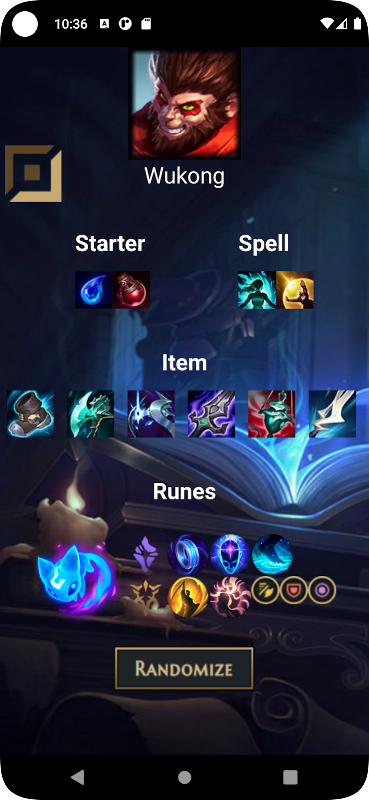 Rastgele Lol: Şampiyonları, rünleri ve öğeleri rastgele belirleyin. League of Legends uygulaması.