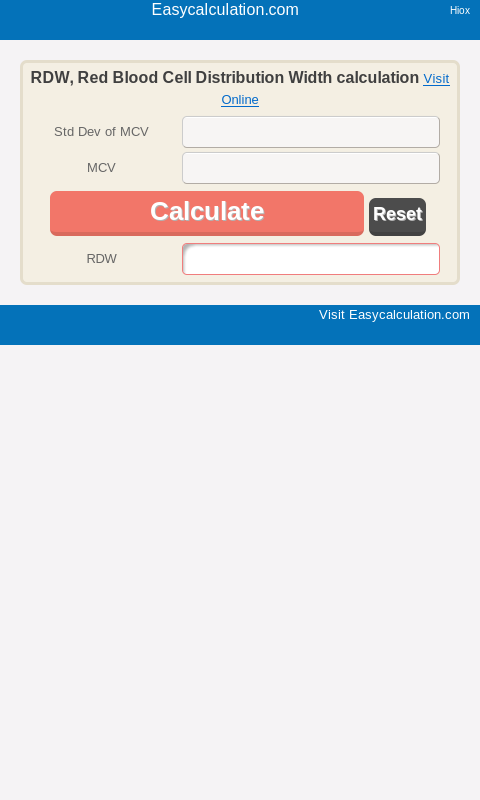 RBC Dağıtım Genişliği Kireç redblood hücre dağılımı genişliğini bulmak için kullanılır
