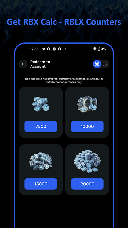 Bu sezgisel Robux takip aracıyla tahmini Robux kazançlarınızı takip edin. Platformun hayranları için tasarlanan bu uygulama, üyelik seviyenize göre günlük Robux istatistiklerinizi hesaplamanıza ve izlemenize yardımcı olur.