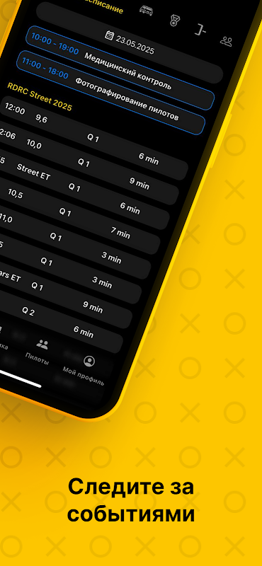 Uygulamada geçmiş ve yaklaşan yarışmalarla ilgili tüm bilgileri bulabilir, favori pilotlarınızın profillerini görüntüleyebilirsiniz.