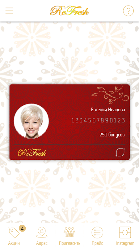 “Re Fresh” bir güzellik merkezidir. İkramiye sadakat programı.