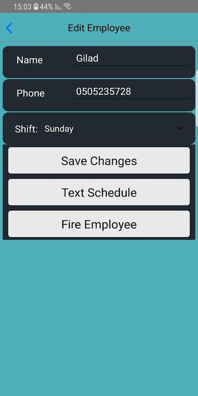- Manage your employees shifts times and personal details