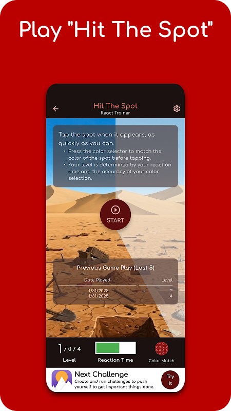 React Trainer, tepki ve odaklanma becerilerinizi geliştirmenize yardımcı olmayı amaçlayan bir dizi mini oyun içerir. Oyunlar ilgi çekicidir ancak basittir. Her gün birkaç dakika oynamak, stresli durumlarla karşılaştığınızda zihninizin odaklanmasını sağlamanıza yardımcı olabilir.